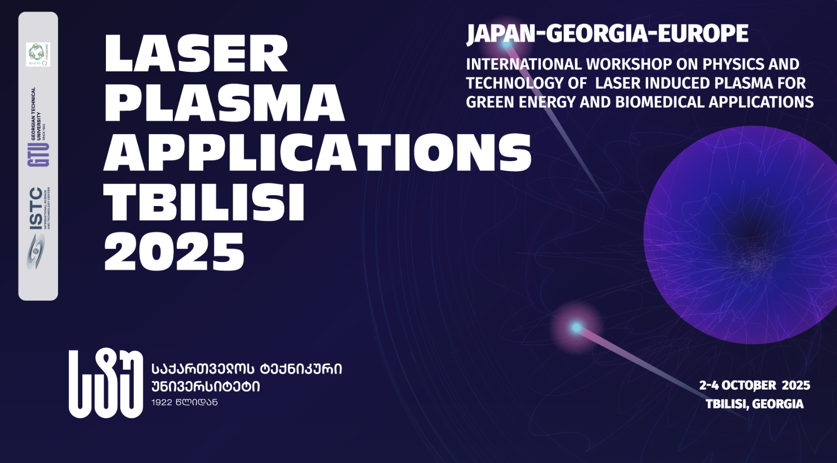 2025-10-06 იაპონია-საქართველო-ევროპის საერთაშორისო ვორქშოპი/კონფერენცია „ლაზერული პლაზმის გამოყენება - თბილისი 2025“ საქართველოს ტექნიკურ უნივერსიტეტში, საერთაშორისო მეცნიერებისა და ტექნოლოგიების ცენტრის, საქართველოში იაპონიის საელჩოს, საქართველოს ტექნიკური უნივერსიტეტისა და ევროკავშირის COST პროგრამის პროექტის - „პროტონ-ბორის ბირთვული სინთეზი“ მხარდაჭერით, იაპონია-საქართველო-ევროპის საერთაშორისო ვორქშოპი/კონფერენციის - „ლაზერული პლაზმის გამოყენება - თბილისი 2025“ (სრული სახელწოდება: „ლაზერით ინდუცირებული პლაზმის ფიზიკისა და ტექნოლოგიების შესახებ - მწვანე ენერგიისა და ბიოსამედიცინო გამოყენებისთვის“ (Japan-Georgia-Europe International Workshop on Physics and Technology of Laser-Induced Plasma for Green Energy and Biomedical Applications – Laser Plasma Applications, Tbilisi 2025) - დახურვის ღონისძიება გაიმართა. The closing event of the Japan–Georgia–Europe International Workshop/Conference “Laser Plasma Applications – Tbilisi 2025” (full title: “Japan–Georgia–Europe International Workshop on Physics and Technology of Laser-Induced Plasma for Green Energy and Biomedical Applications”) was held at the Georgian Technical University, with the support of the International Science and Technology Center (ISTC), the Embassy of Japan in Georgia, the Georgian Technical University, and the EU COST project “Proton–Boron Nuclear Fusion.” |